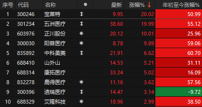 受该消息刺激,今天A股医疗器械板块大涨,宝莱特、五洲医疗、正川股份等涨停。